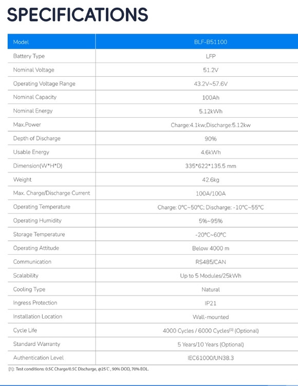 مقدار انرژی اسمی: 5.12KWh